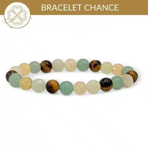 Quatre pierres incontournables attirent la chance, la réussite et l’abondance : la Citrine, l’Aventurine verte, le Jade et l’Œil de Tigre. Vous les retrouverez dans notre Bracelet Chance ainsi que dans notre kit de lithothérapie chance (4 pierres roulées), disponibles dans la boutique.