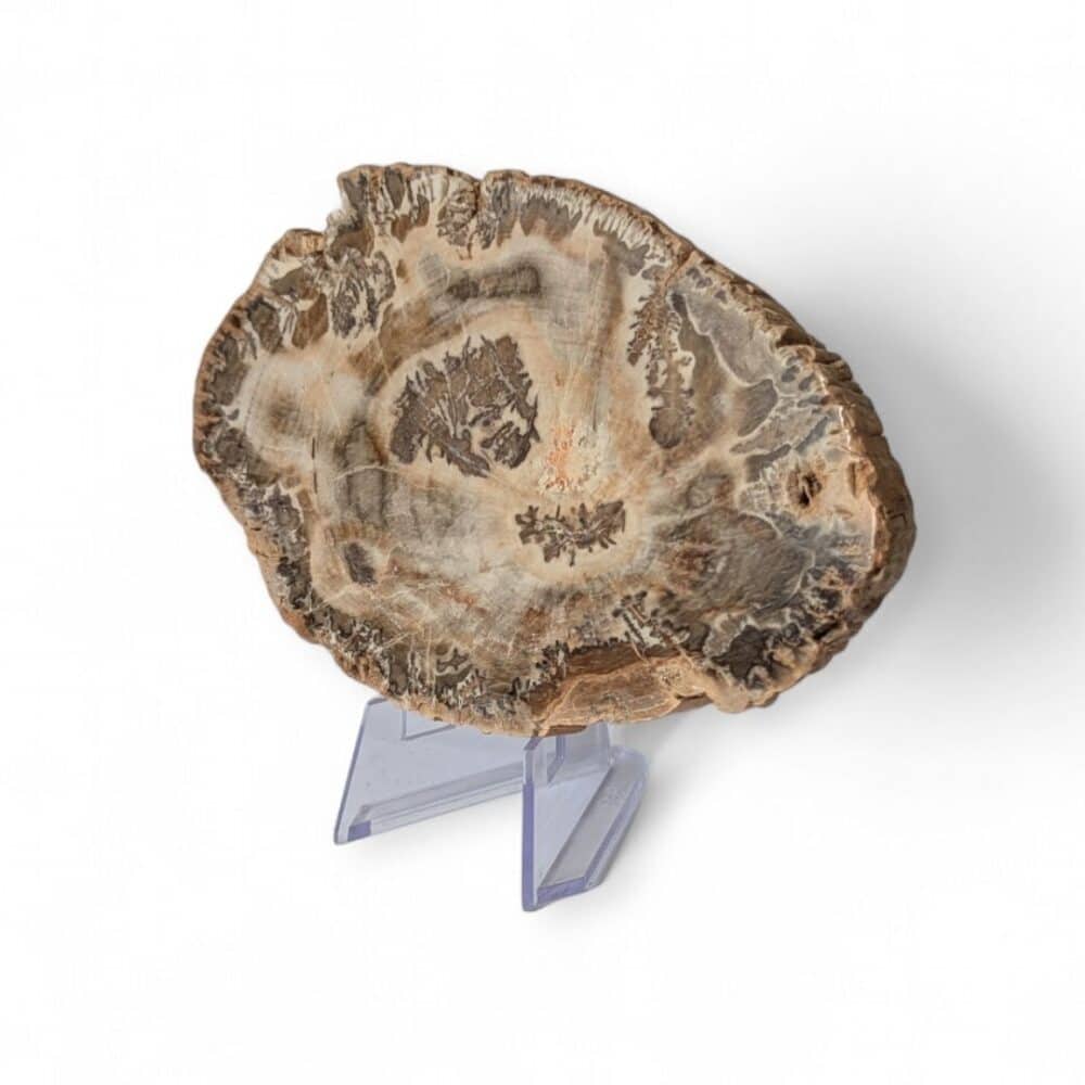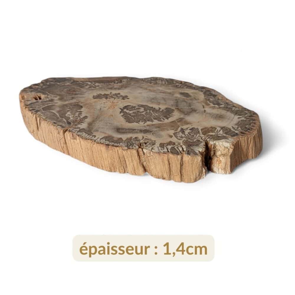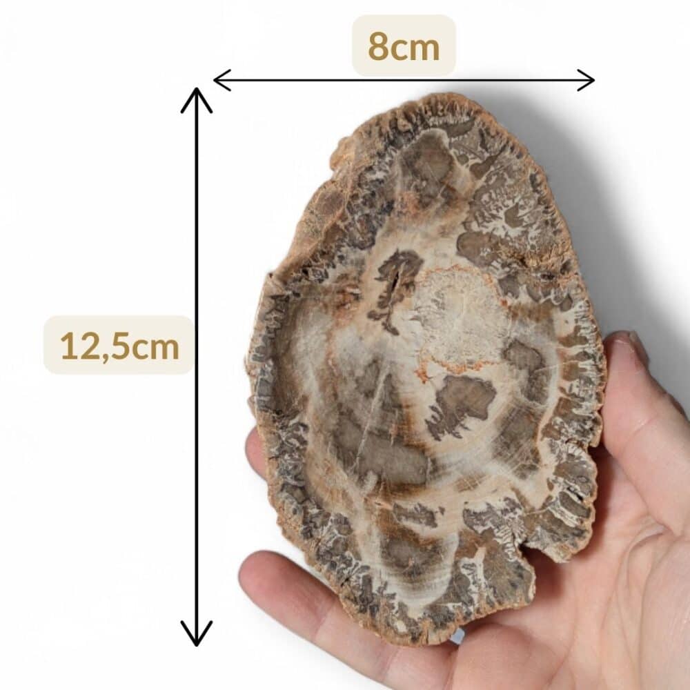 Lorsque les troncs de bois fossilisés sont taillés en tranches, ils deviennent de véritables pièces décoratives uniques. Cette tranche de 12x8cm permet d’accueillir dans sa maison une énergie à la fois végétale et minérale, douce, stable et profondément ancrée.
