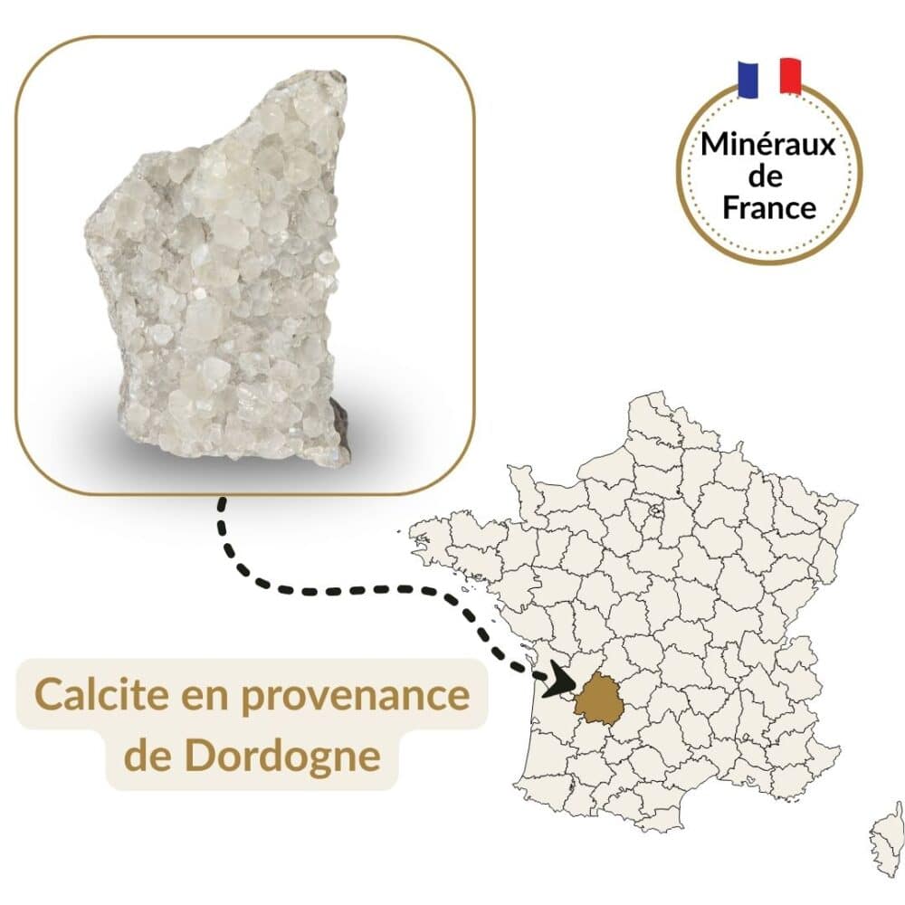 Choisir cette calcite de Dordogne, c’est privilégier un gisement local français et collectionner une pierre issue du patrimoine géologique régional.