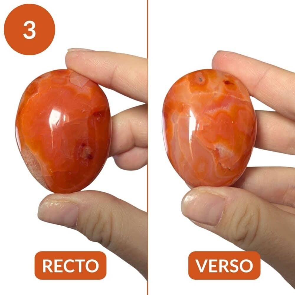 Tenez le galet en Cornaline dans la main ou glissez-le dans une poche pour renforcer confiance et vitalité.