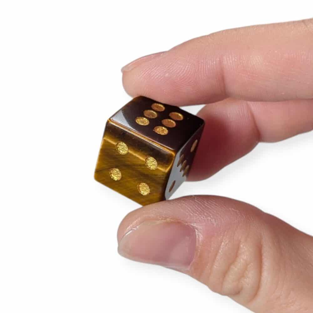 Envie d’ajouter une dimension unique à vos jeux de société ? Ce dé en Œil de Tigre est l’accessoire parfait pour allier plaisir de jouer et puissance des pierres naturelles. Sa surface aux reflets dorés capture la lumière et apporte une énergie supplémentaire à chaque lancer.