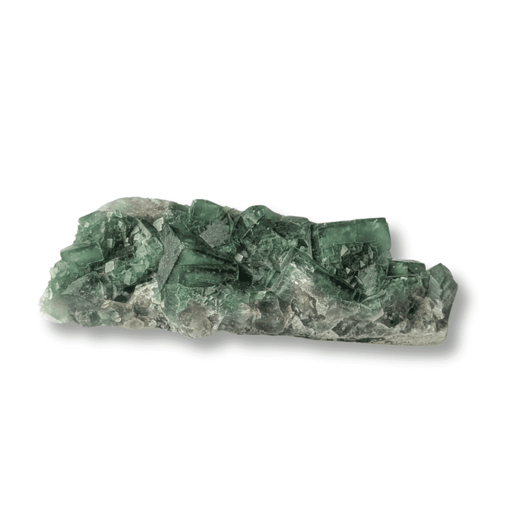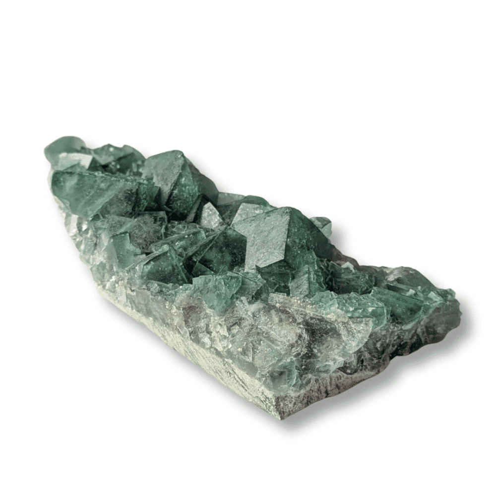 Cette druse de Fluorite verte se distingue par ses cristaux cubiques parfaitement formés. Elle offre une vision authentique et fascinante du minéral à l’état brut. Lorsque la lumière s’y pose, elle révèle de magnifiques nuances vert émeraude, parfois translucides, qui semblent s’animer sous vos yeux.