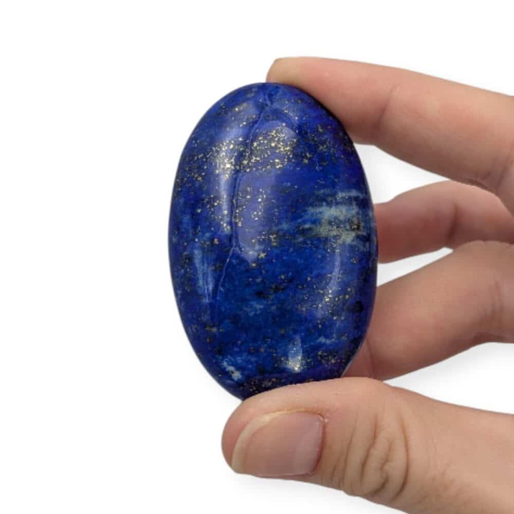 Admirez toute la beauté de ce galet en Lapis-Lazuli qualité extra. Son bleu outremer naturel est sublimé par des inclusions dorées de Pyrite.