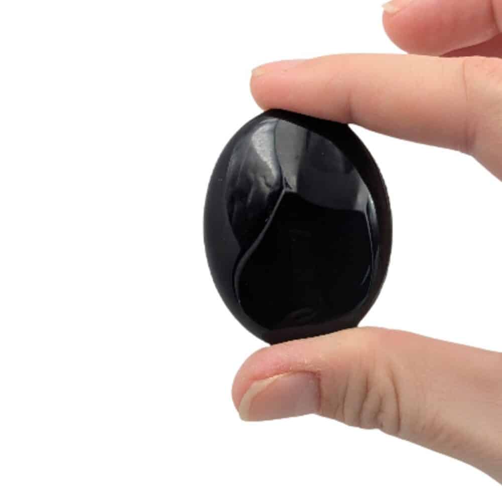 Sombre et brillant, le galet en Obsidienne noire met en lumière l’énergie volcanique de cette pierre issue des profondeurs de la Terre.