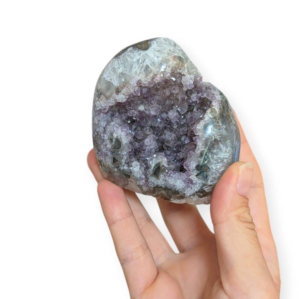 L’Améthyste sous forme de géode permet de purifier et de recharger les minéraux violets ou bleu-violet. Elle peut donc être une solution alternative si vous avez des difficultés à recharger vos pierres les soirs de pleine Lune. Vous pouvez donc disposer vos minéraux à côté de la géode pendant plusieurs heures afin de les recharger complètement.