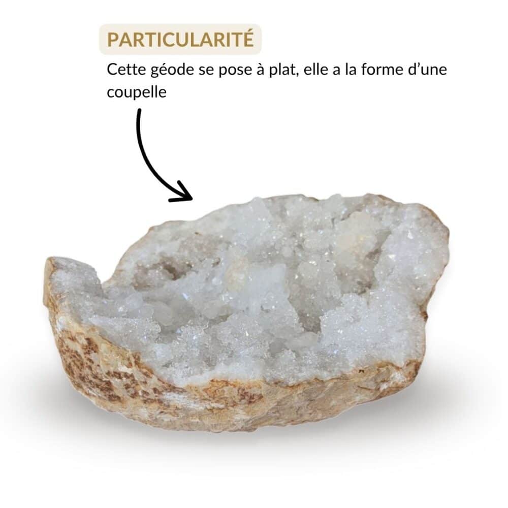 En plus de ses nombreuses vertus, la géode de Cristal de Roche est un très bel objet de décoration qui embellit votre intérieur. Elle complètera à merveille la série d’une jolie collection de minéraux.