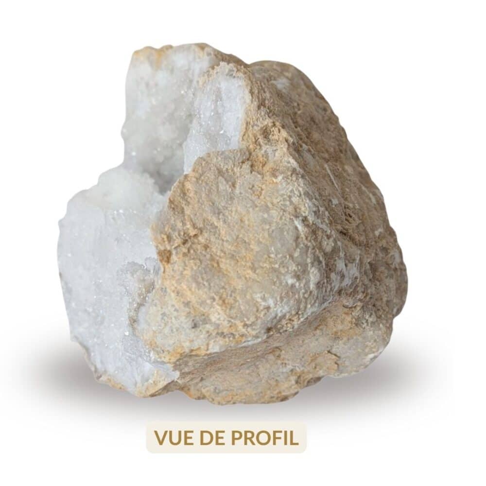 Véritable pierre maîtresse en lithothérapie, cette géode de Cristal de Roche est un indispensable à avoir chez soi.