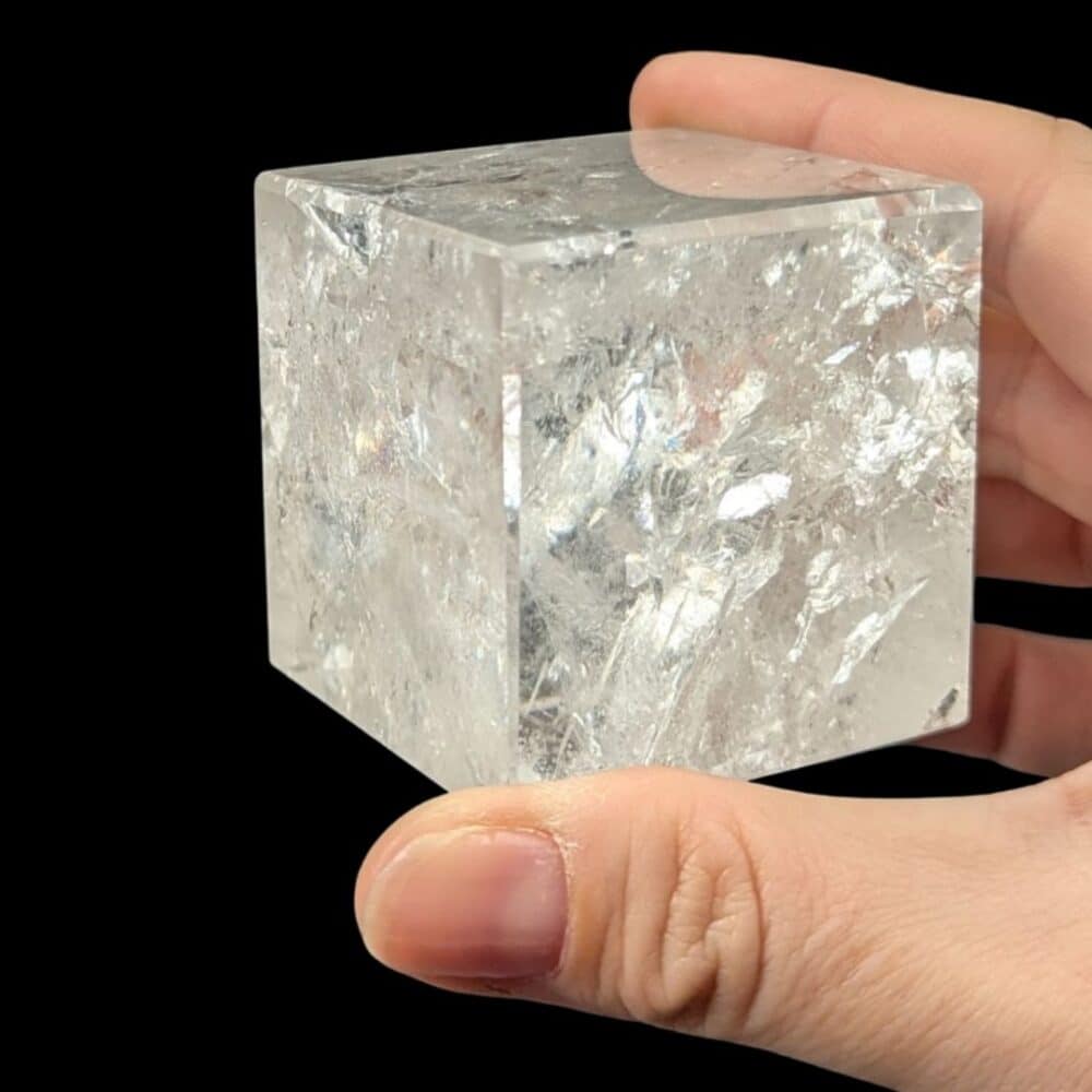 Si vous aimez les formes géométriques et plus particulièrement les solides de Platon, laissez-vous séduire par l’un d’eux : l’Hexaèdre en Cristal de roche de 4,6 cm.