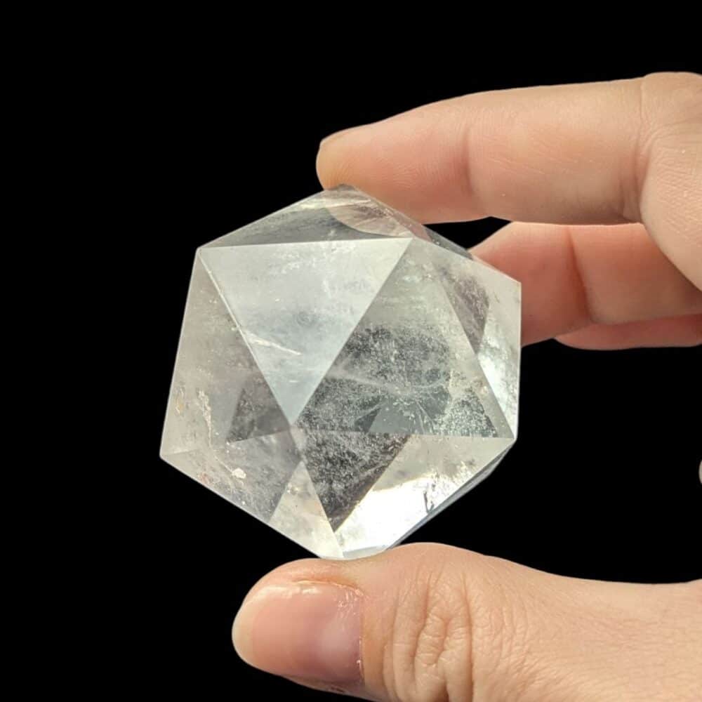 L’icosaèdre en cristal de roche est l’un des cinq solides de Platon.