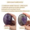 ATTENTION ! Tenir hors de la portée des enfants, danger d’étouffement car risque d’ingestion ou d’ inhalation de petits éléments. En lithothérapie, les différentes propriétés associées aux pierres sont issues de traditions. Elles ne sont pas prouvées scientifiquement et ne sauraient se substituer à un traitement médical. Pour tout problème d’ordre médical, nous vous recommandons de consulter votre médecin.