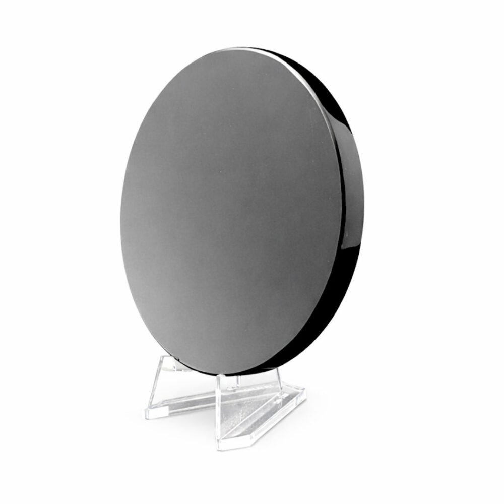 Sa surface noire, lisse et réfléchissante sert de support à la divination par le miroir (catoptromancie), à la méditation et au voyage intérieur. Vous pouvez aussi l’utiliser comme objet de décoration, posé sur une étagère ou un autel, où son effet miroir reflète subtilement la lumière et les éléments environnants.