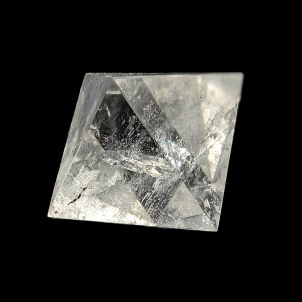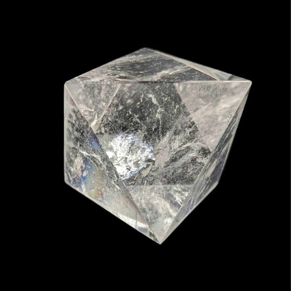 Cet Octaèdre en Cristal de roche de 7cm est une forme géométrique sacrée appartenant aux 5 solides de Platon.