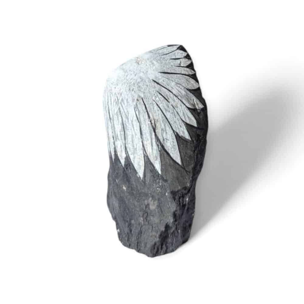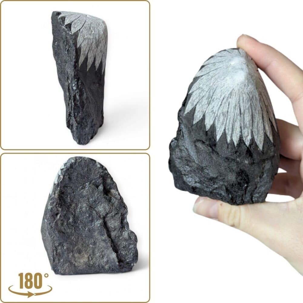 Découvrez la pierre fleur de chrysanthème, une pierre naturelle absolument fascinante, reconnaissable à ses motifs floraux uniques qui semblent figés dans la roche. Ces “fleurs” blanches ou crème se forment naturellement dans une matrice sombre (souvent calcaire, dolomie ou argile noire), créant un joli contraste.