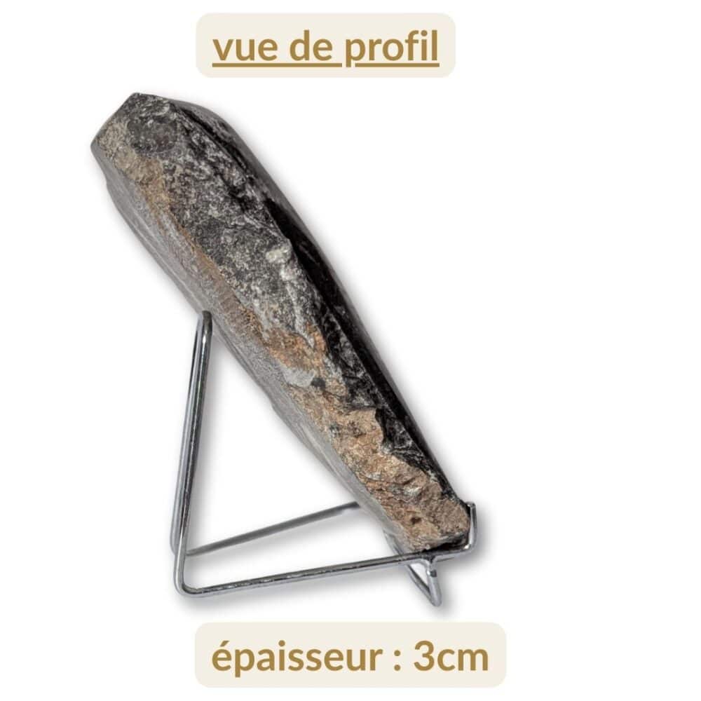 Découvrez un fossile spectaculaire vieux de plus de 400 millions d’années avec cette plaque d’orthocéras. Elle présente trois Orthoceras, anciens mollusques céphalopodes à coquille droite qui peuplaient les océans de la Terre primitive. Leur nom signifie « corne droite », en référence à la forme longue et conique de leur coquille. Au fil du temps, leurs coquilles se sont accumulées au fond des mers, puis ont été recouvertes de sédiments marins. Sous l’effet du temps et de la pression, elles se sont lentement transformées en pierre, donnant naissance à ces fossiles uniques.