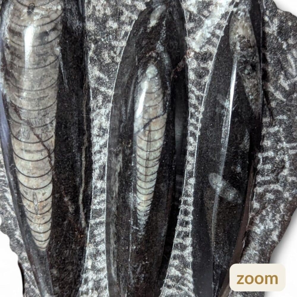 Ayant traversé les âges, les fossiles d’Orthocéras symbolisent la transformation, la résilience et le cycle naturel de la vie. Ils sont souvent liés au chakra racine, favorisant l’ancrage, la stabilité intérieure.