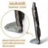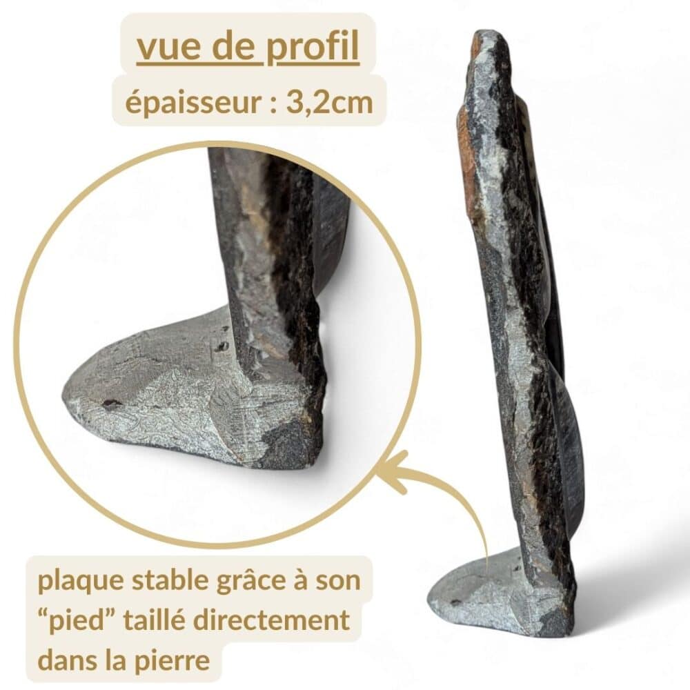 Son petit plus : un pied directement taillé dans la roche garantit une pose stable et sécurisée sur toute surface plane.