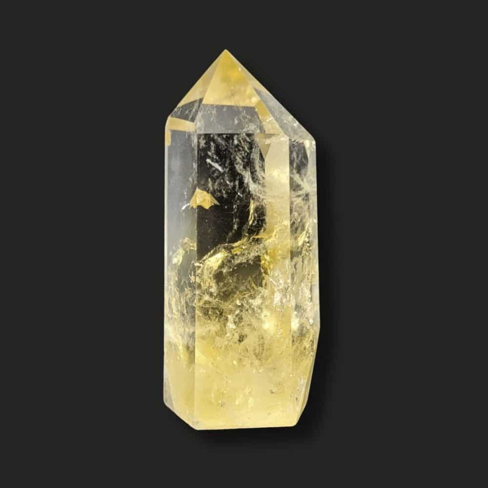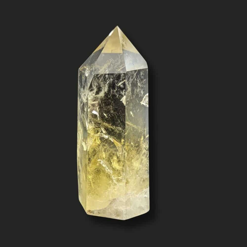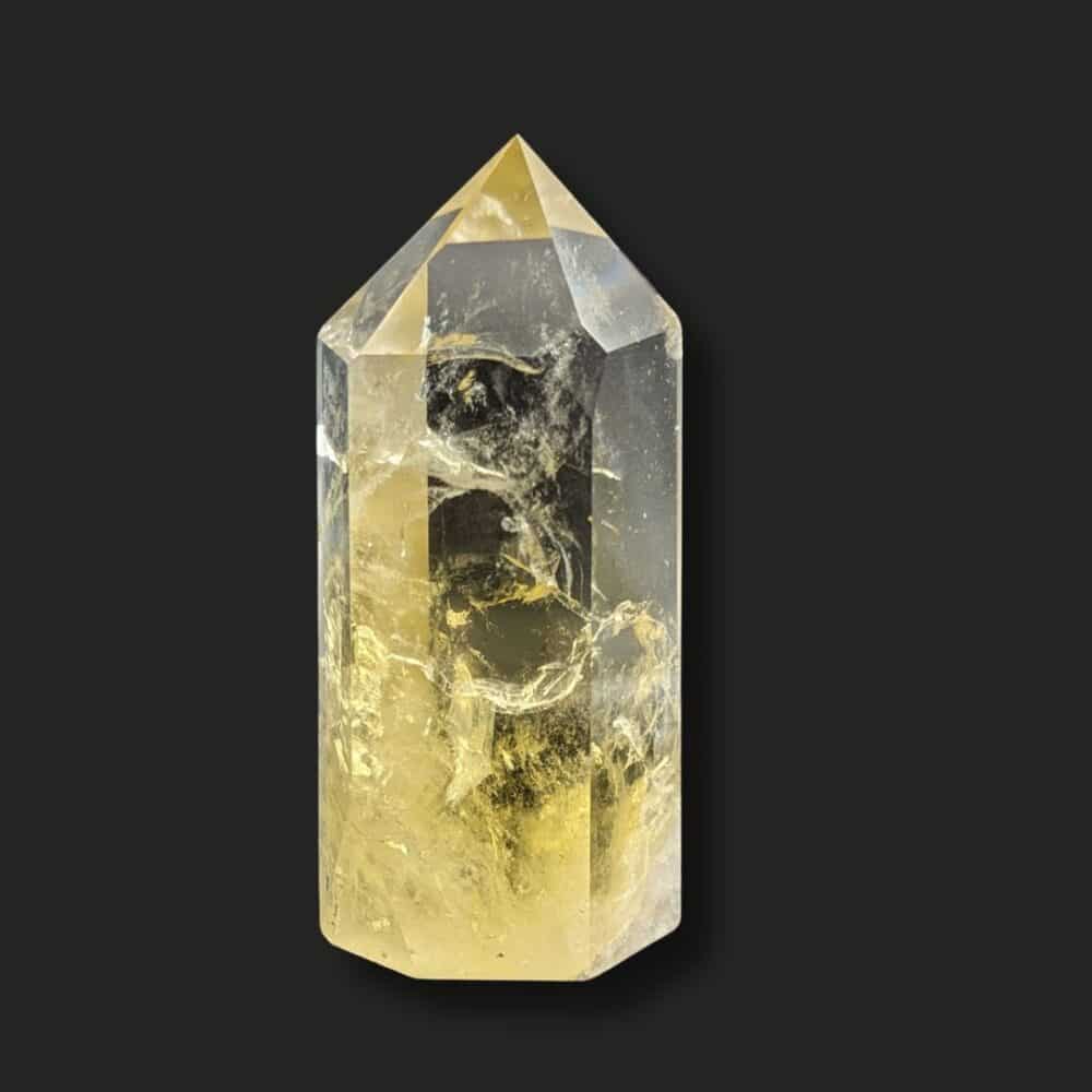 La Citrine en forme de pointe nécessite d’être régulièrement purifiée et rechargée.