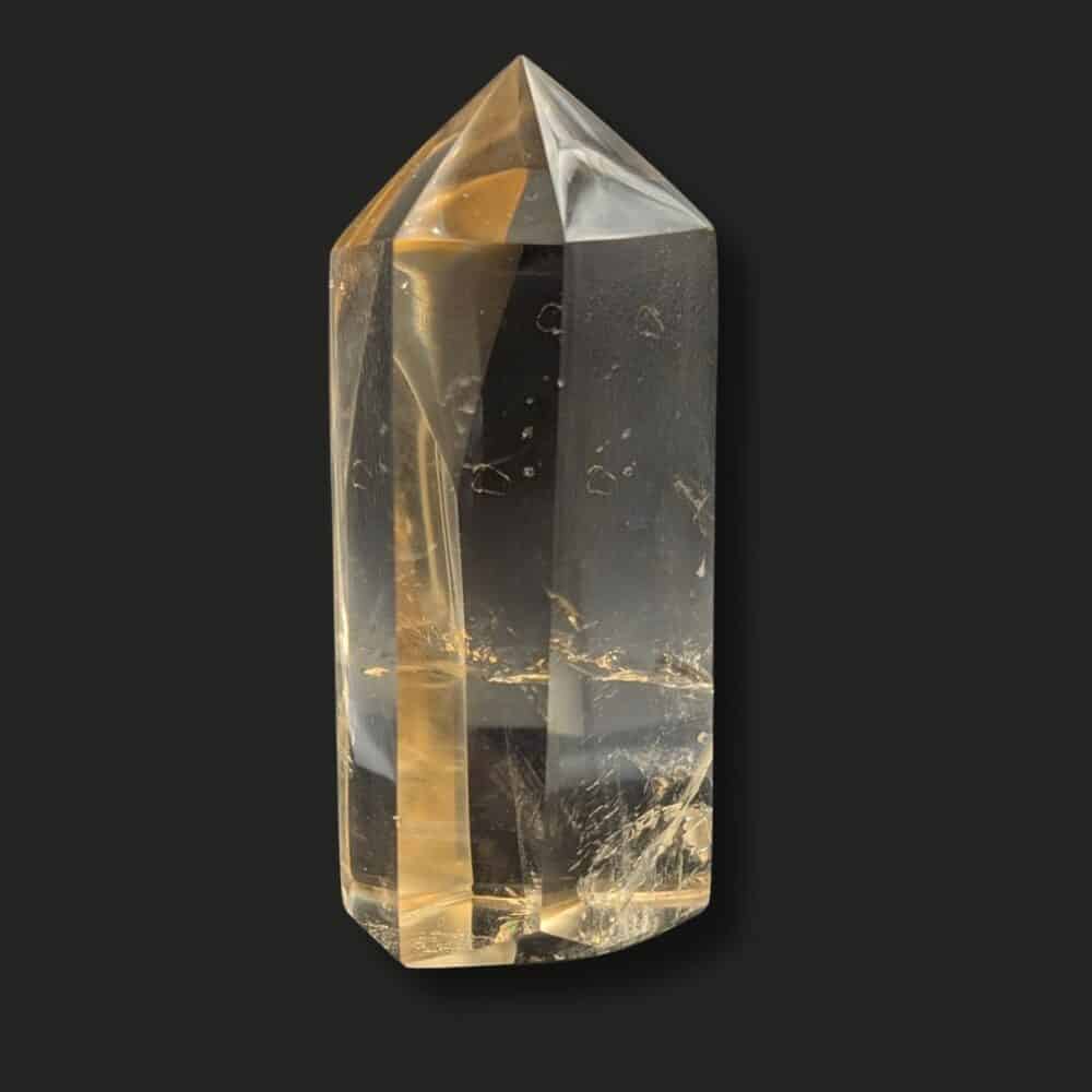 La Citrine en forme de pointe nécessite d’être régulièrement purifiée et rechargée.