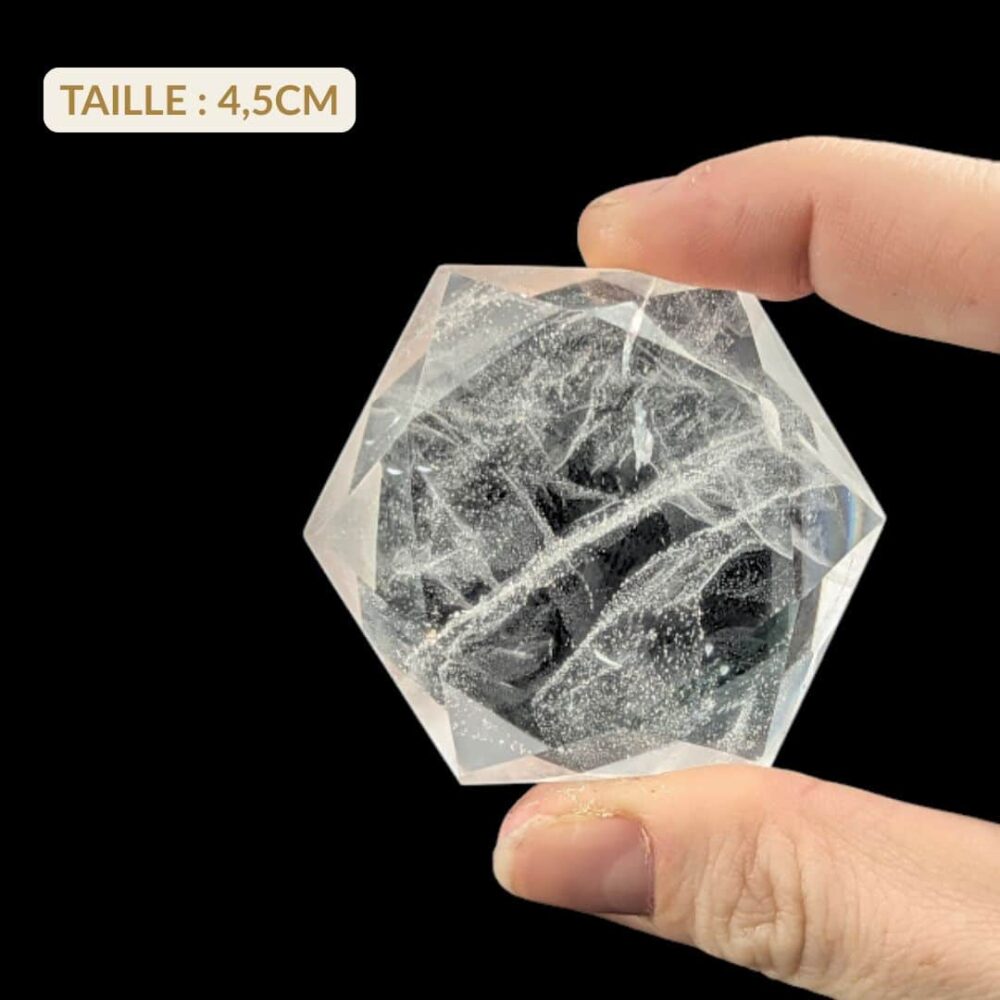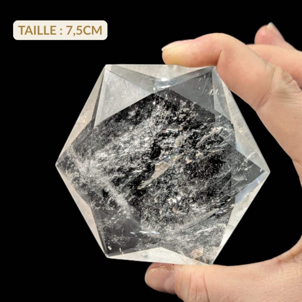 Vous cherchez un symbole protecteur qui allie beauté et pureté ? Le Sceau de Salomon en cristal de roche répond parfaitement à cette intention. Ce symbole spirituel millénaire offre une protection forte et se distingue par sa forme géométrique en hexagramme en 3D.