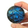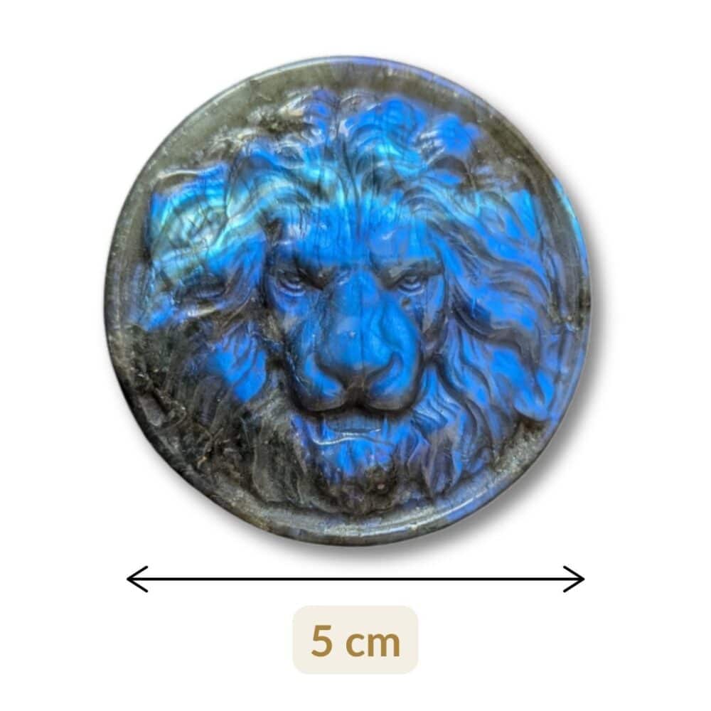 Découvrez cette superbe labradorite sculptée en tête de lion. Sa forme ronde de 5 cm, associée à ses reflets bleus intenses, en fait une pièce unique et surtout riche en significations.