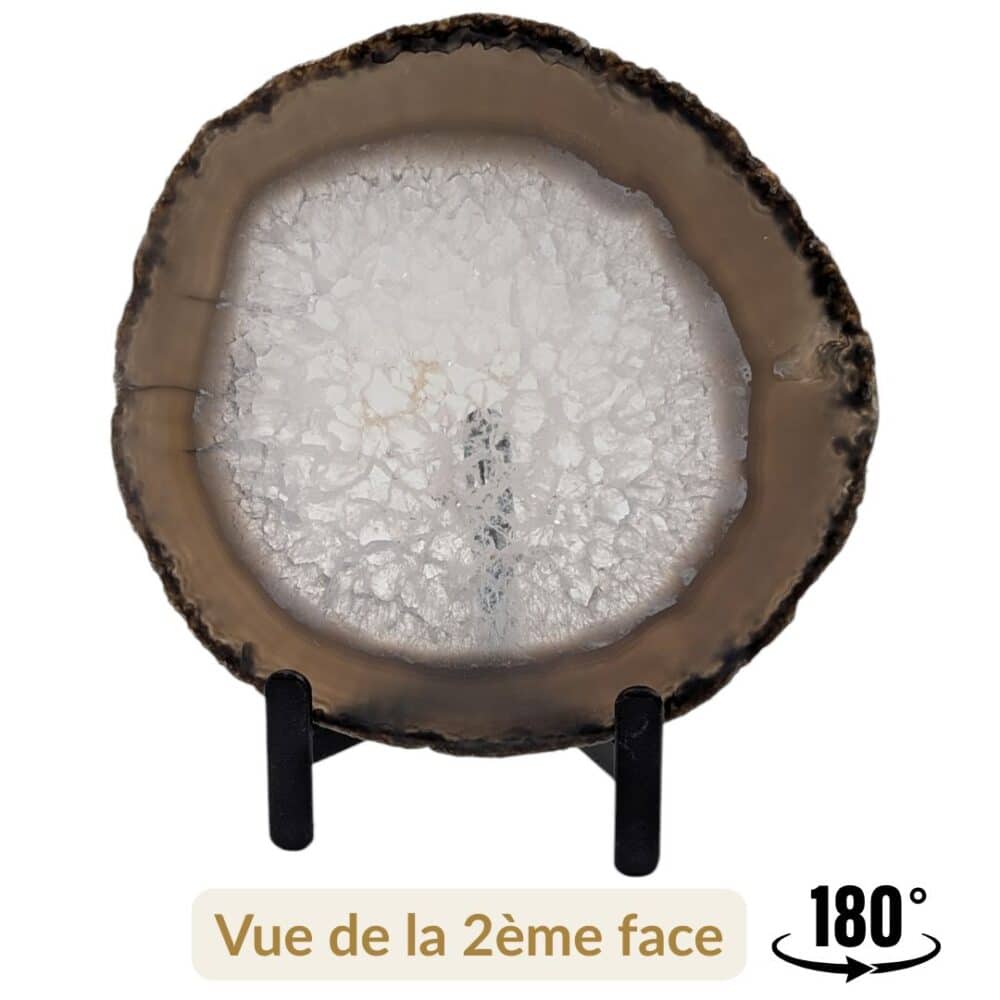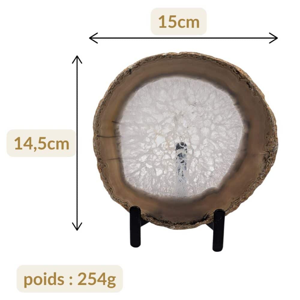 Découvrez cette superbe tranche d’agate naturelle, mise en valeur par son socle qui vous permet de l’exposer facilement dans votre intérieur !